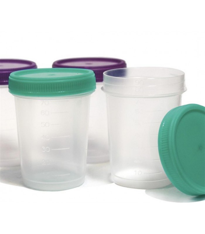 حجم ظرف نمونه 70میلی لیتر می باشد. یورین باتل های بکر بدون نشتی اند و همچنین در نوع استریل آن دارای برچسب درج مشخصات بیمار هستند.